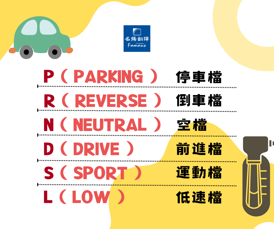 在學開車之前,一定要先知道汽車檔位中P, R, N, D, S的英文是什麼意思,因為這個攸關於車子的前進後退,以及行車安全問題,如果打錯檔就會撞到別台車甚至造成受傷,所以一定要注意打檔是否正確。