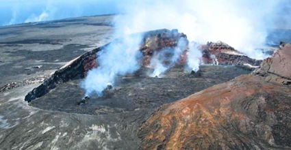 3. 火山氣體volcanic gas,主要成分是水蒸氣(steam),還有二氧化碳(carbon dioxide)、氮氣(nitrogen)等.大部分水氣來自熔岩內部,其它水氣來自地表水或地下水。
