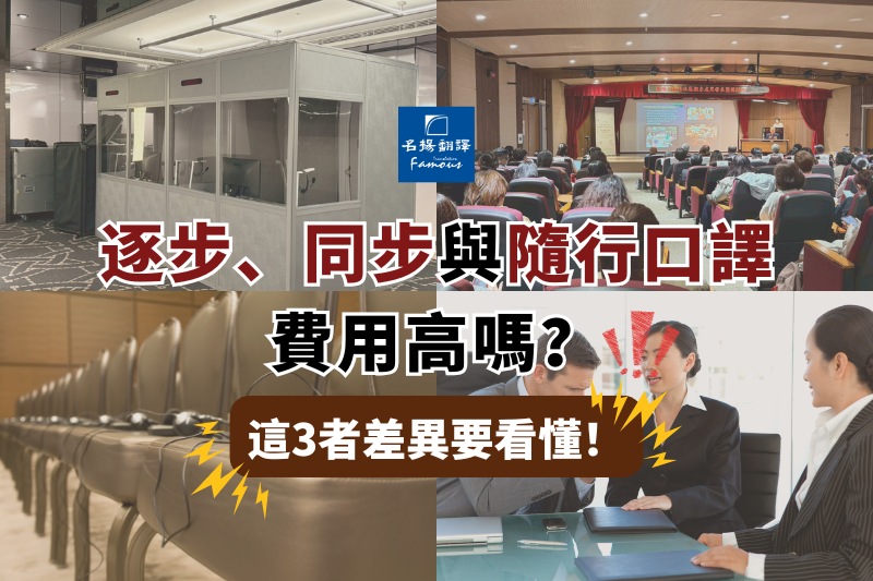 當你在安排國際會議、商務洽談或接待外賓時,常會聽到「逐步口譯」、「同步口譯」和「隨行口譯」這幾種服務,但它們到底有什麼不同?同步口譯費用真的比較高嗎?如果你擔心花了錢卻沒選到最適合的口譯方式,那不妨就跟著本文一起搞懂這3種口譯的使用情境、優缺點與費用差異,幫助你提升溝通效率,同時也做出最實用又划算的好選擇!