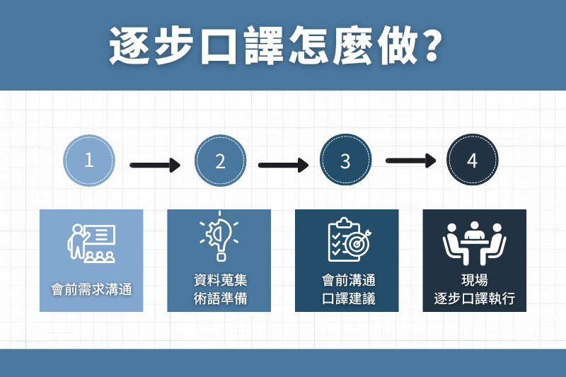 專業的逐步口譯絕非臨場發揮,而是建立在充分的會前準備與現場配合之上。完整的逐步口譯流程通常包含以下幾個步驟: