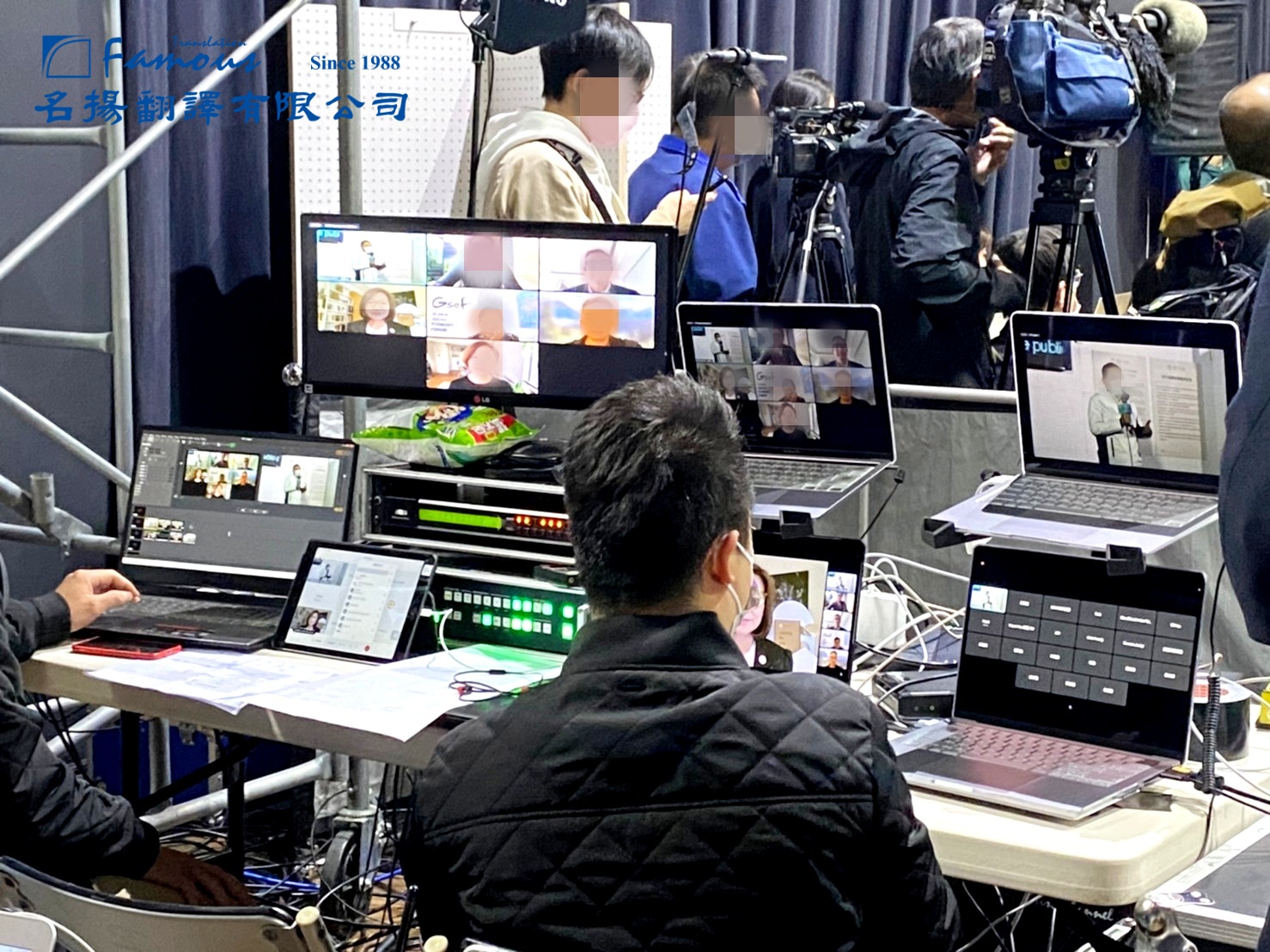 現場即時與外國講者視訊連線進行同步口譯,名揚的同步口譯團隊經歷過各種大大小小的口譯會議,除了有足夠的口譯經驗外,對於現場的臨時變動都能輕鬆掌握,讓客戶不用擔心翻譯問題。