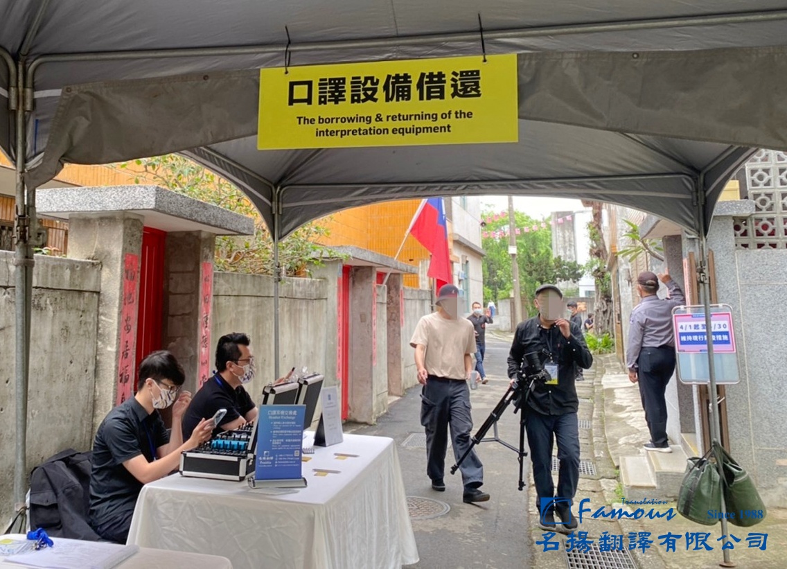 我們在門口也設有口譯機交換處,同時也會說明使用方式及頻道該如何選擇,在器材的技術方面也有技術人員備在現場,以面對各種臨時狀況。
